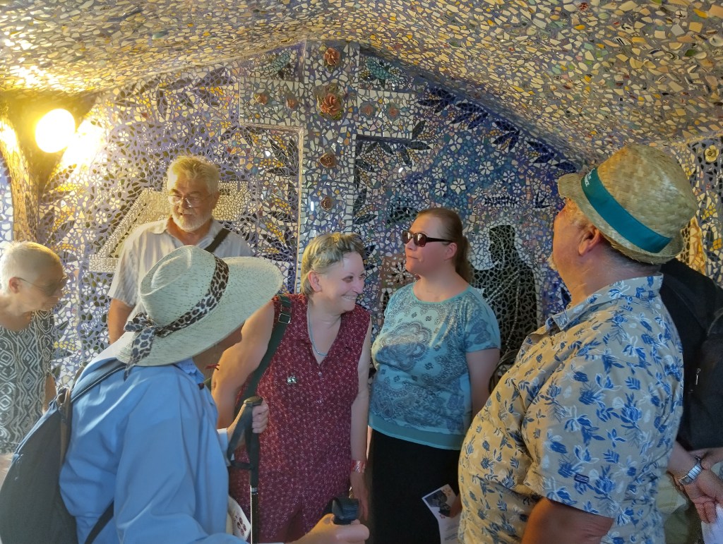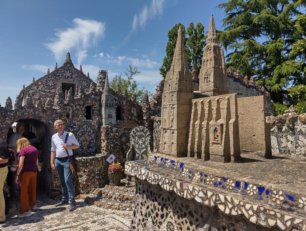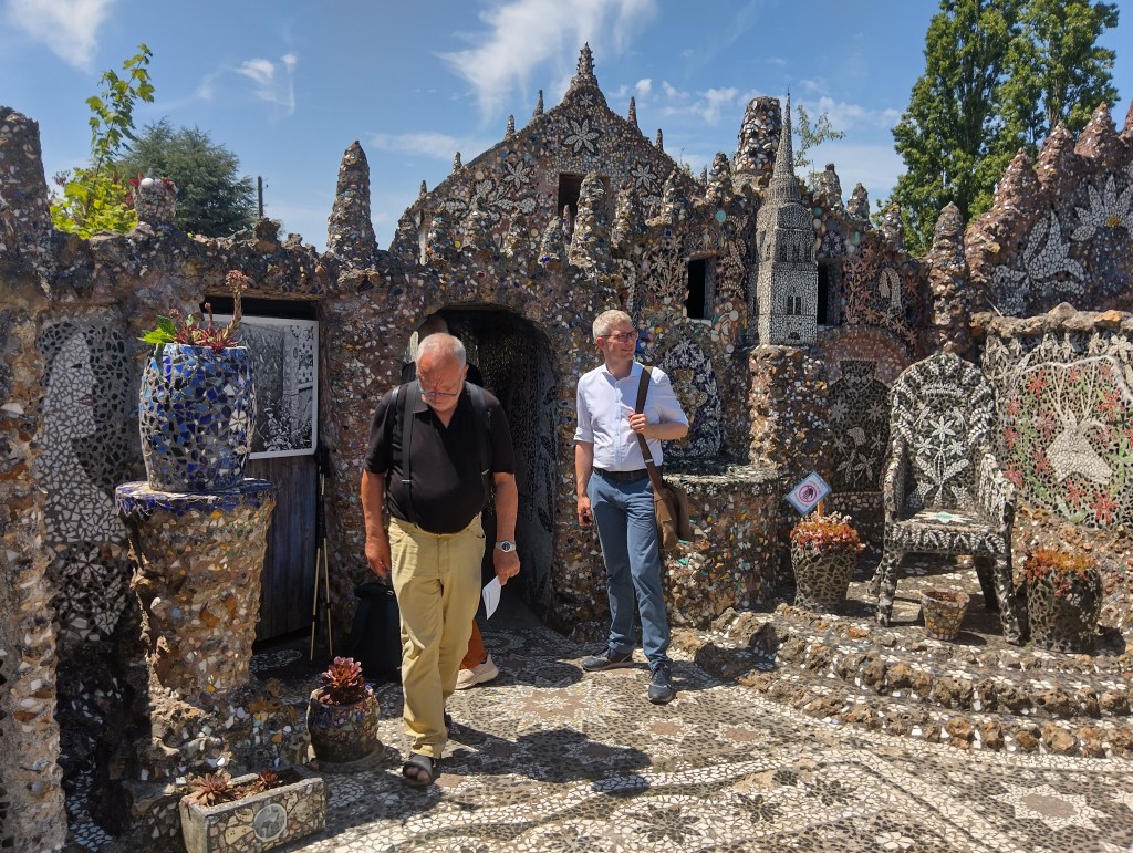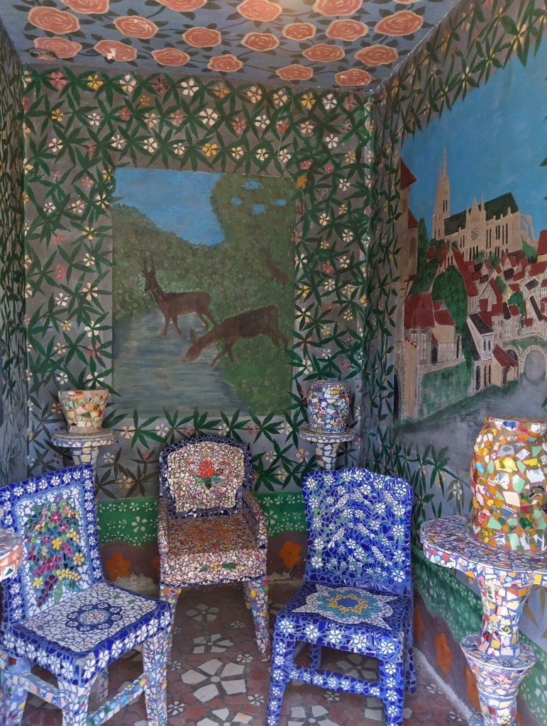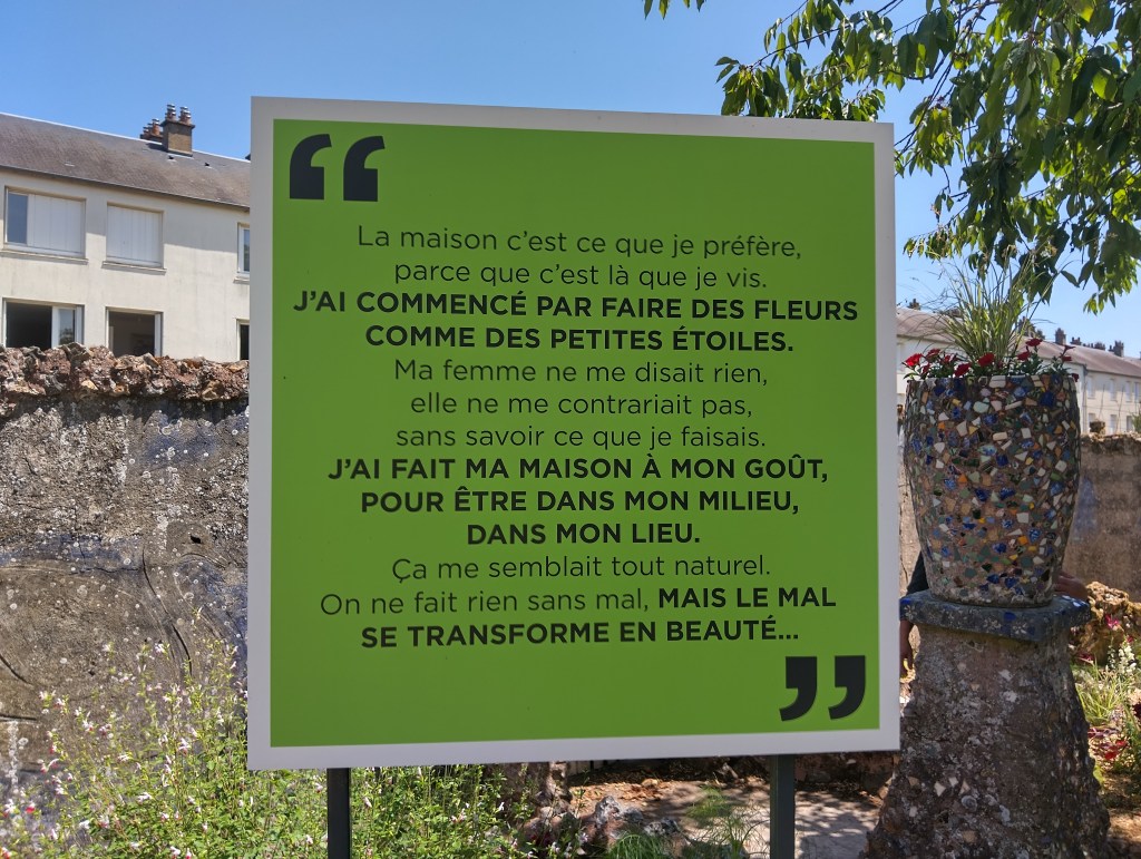 Lors de ses promenades, il prend l’habitude de ramasser des morceaux de verre et de faïence qu’il transforme en mosaïques pour embellir sa maison.
