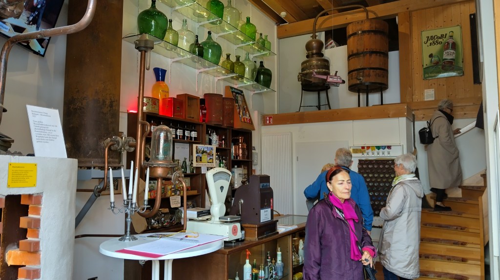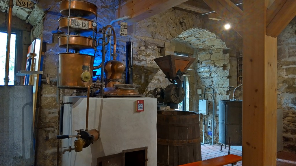 Le Schwäbische Schnapsmuseum, créé en 1993, habite une maison de pierre de 1296. Les très nombreux distilleries sont à l’origine de l’évolution de notre société culturelle par la présence de vergers. Il y a quelques années, l’eau de boisson était un médicament coûteux. La plus grande collection d’Allemagne a permis de mesurer l’évolution de la distillerie. La description s’étend des petites brûleries, des distilleries avec refroidisseurs jusqu’à la grande distillerie à colonnes. Pendant les guerres et la période de l’après-guerre, l’épinette était un excellent produit du marché noir. L’aspect socio-historique est un thème essentiel, car les spiritueux font partie de la culture.