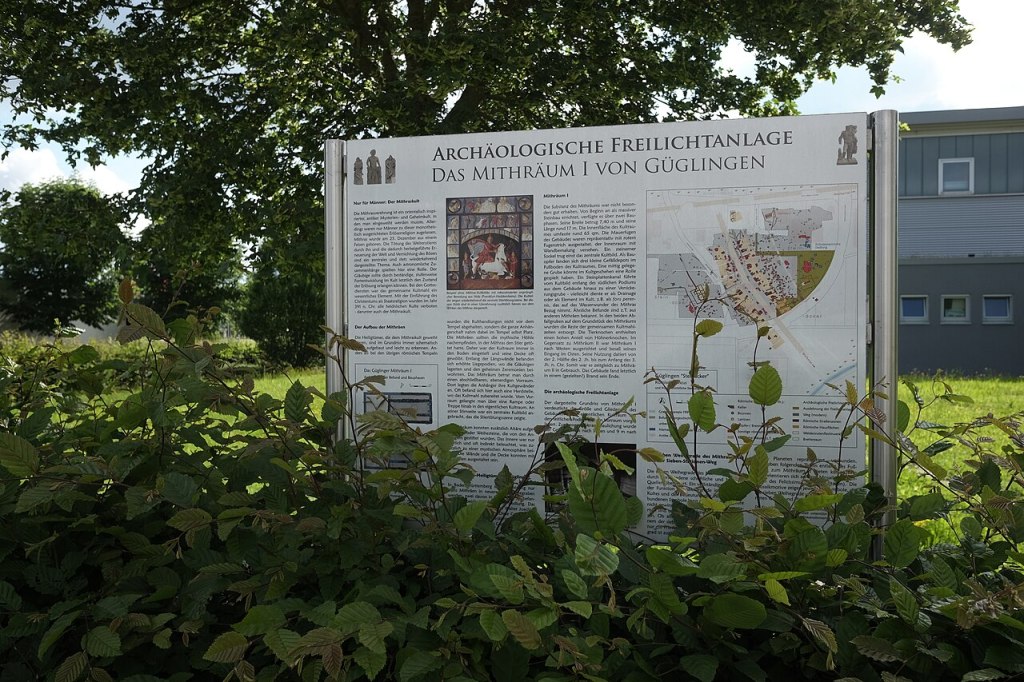 Dans le vicus romain de Güglingen, qui a fait l’objet de recherches à grande échelle, un sanctuaire de rue a été reconstitué. Outre deux colonnes de géants de Jupiter, une sculpture en grès presque grandeur nature du dieu « Hercule » y était installée. L’Hercule a été retrouvé dans une cave à proximité immédiate du sanctuaire, avec de nombreux autres monuments en pierre de contexte religieux.